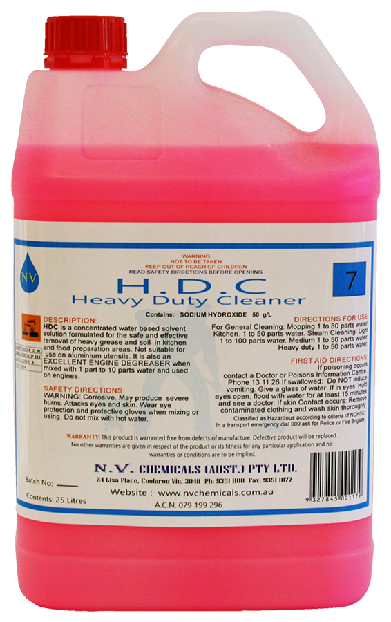 HDC is a heavy duty floor cleaner containing sodium hydroxide which removes grease, oil and fats from walls, floors, utensils and equipment, as well as interiors of food transport vehicles.